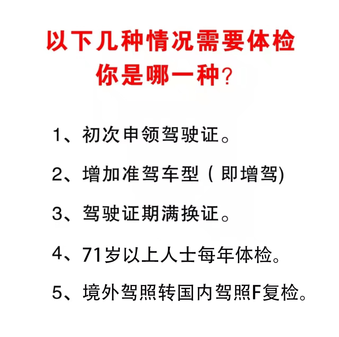 體檢車型:A1、A2、A3;B1、B2;C1、C2、C3、C4;D;E;F